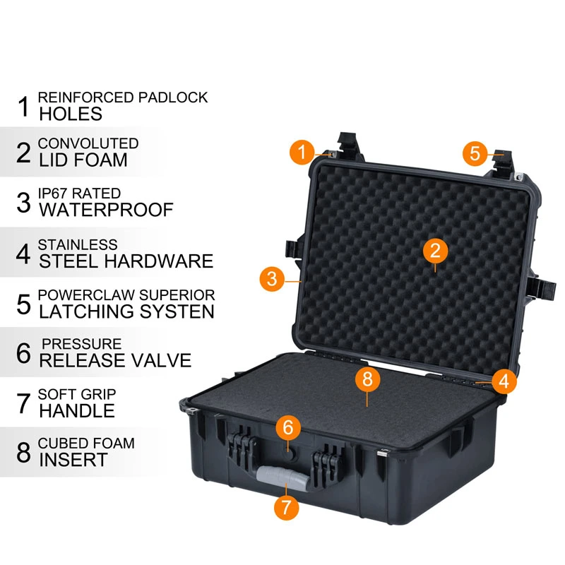 • Caja de transporte de herramientas impermeables de plástico duroCaja de transporte de herramientas impermeables de plástico duro